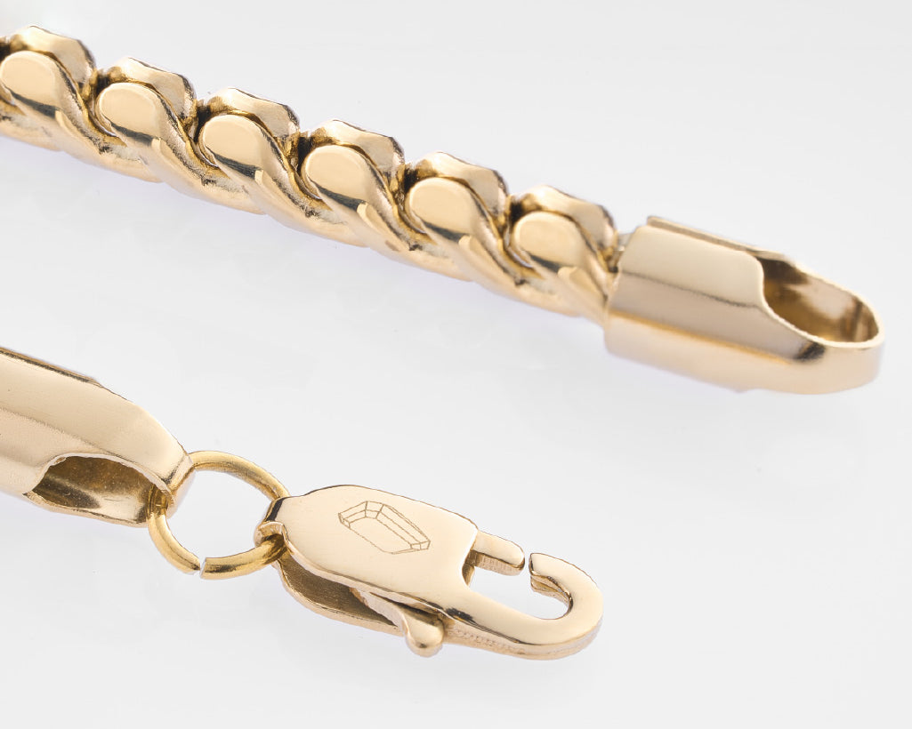 Fundimos Oro 18k sobre titanio, forjando un blindaje con el color, brillo y textura del Oro Italiano. Su durabilidad es aprobada en laboratorio, por esto, nuestra garantía es de por vida y certificada.