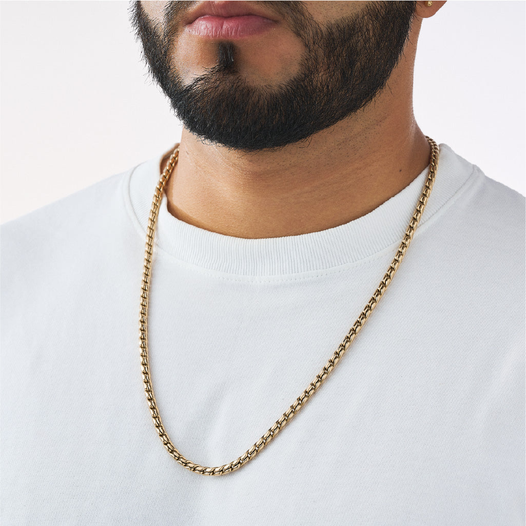 Fundimos Oro 18k sobre una aleación de titanio, forjando un blindaje con el color, brillo y textura del Oro Italiano.