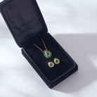 Elegancia y sofisticación en una sola pieza. Este combo está elaborado en plata de alta calidad bañada en oro, realzados con esmeraldas de laboratorio que destacan por su intenso color verde. Su diseño atemporal los convierte en el complemento ideal para cualquier ocasión, ofreciendo la resistencia de la plata, el brillo del oro y el resplandor de la esmeralda.