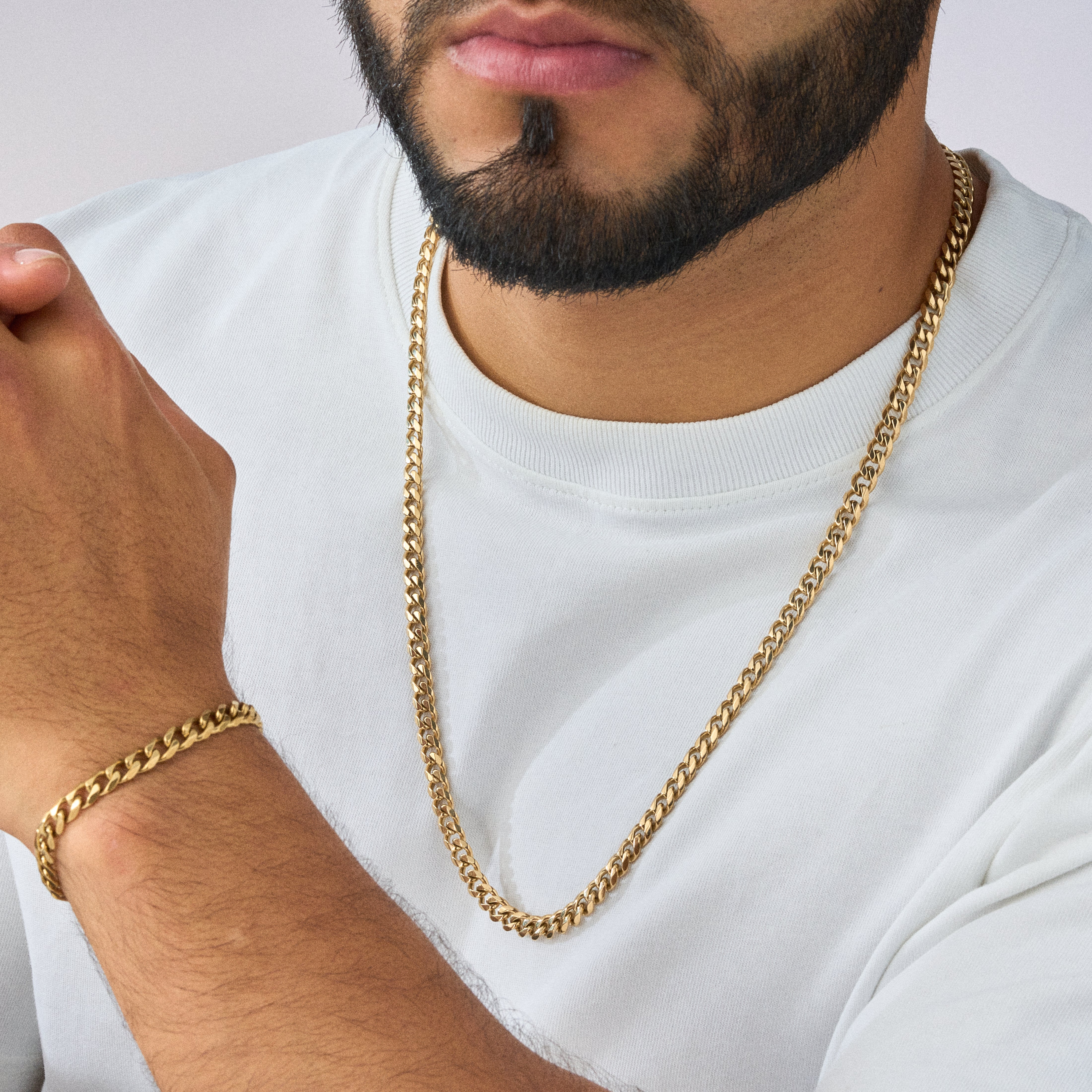 Combo grabado, cadena y pulso.. Fundimos Oro 18k sobre titanio, forjando un blindaje con el color, brillo y textura del Oro Italiano. Su durabilidad es aprobada en laboratorio, por esto, nuestra garantía es de por vida y certificada.