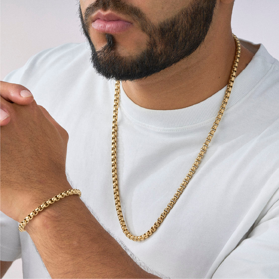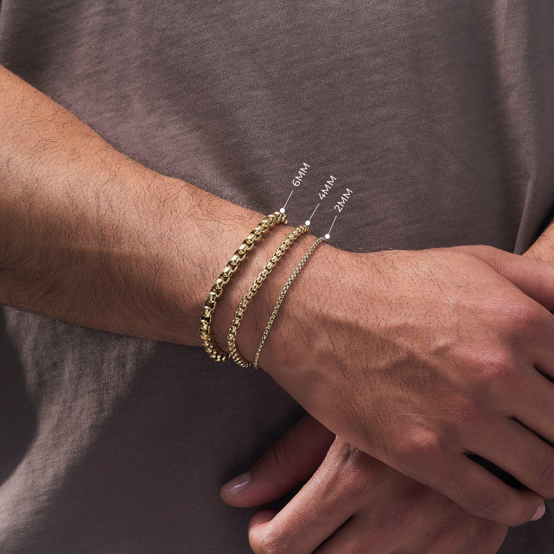 Combo veneciano, cadena y pulso. Fundimos Oro 18k sobre titanio, forjando un blindaje con el color, brillo y textura del Oro Italiano. Su durabilidad es aprobada en laboratorio, por esto, nuestra garantía es de por vida y certificada.