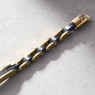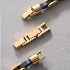 Fundimos Oro 18k sobre una aleación de titanio, forjando un blindaje con el color, brillo y textura del Oro Italiano.