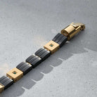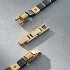 Fundimos Oro 18k sobre una aleación de titanio, forjando un blindaje con el color, brillo y textura del Oro Italiano.
