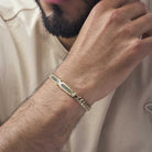 Fundimos Oro 18k sobre una aleación de titanio, forjando un blindaje con el color, brillo y textura del Oro Italiano.