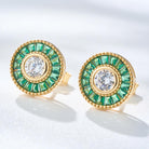 Elegancia y sofisticación en una sola pieza. Estos aretes están elaborados en plata de alta calidad bañada en oro, realzados con esmeraldas de laboratorio que destacan por su intenso color verde. Su diseño atemporal los convierte en el complemento ideal para cualquier ocasión, ofreciendo la resistencia de la plata, el brillo del oro y el resplandor de la esmeralda.