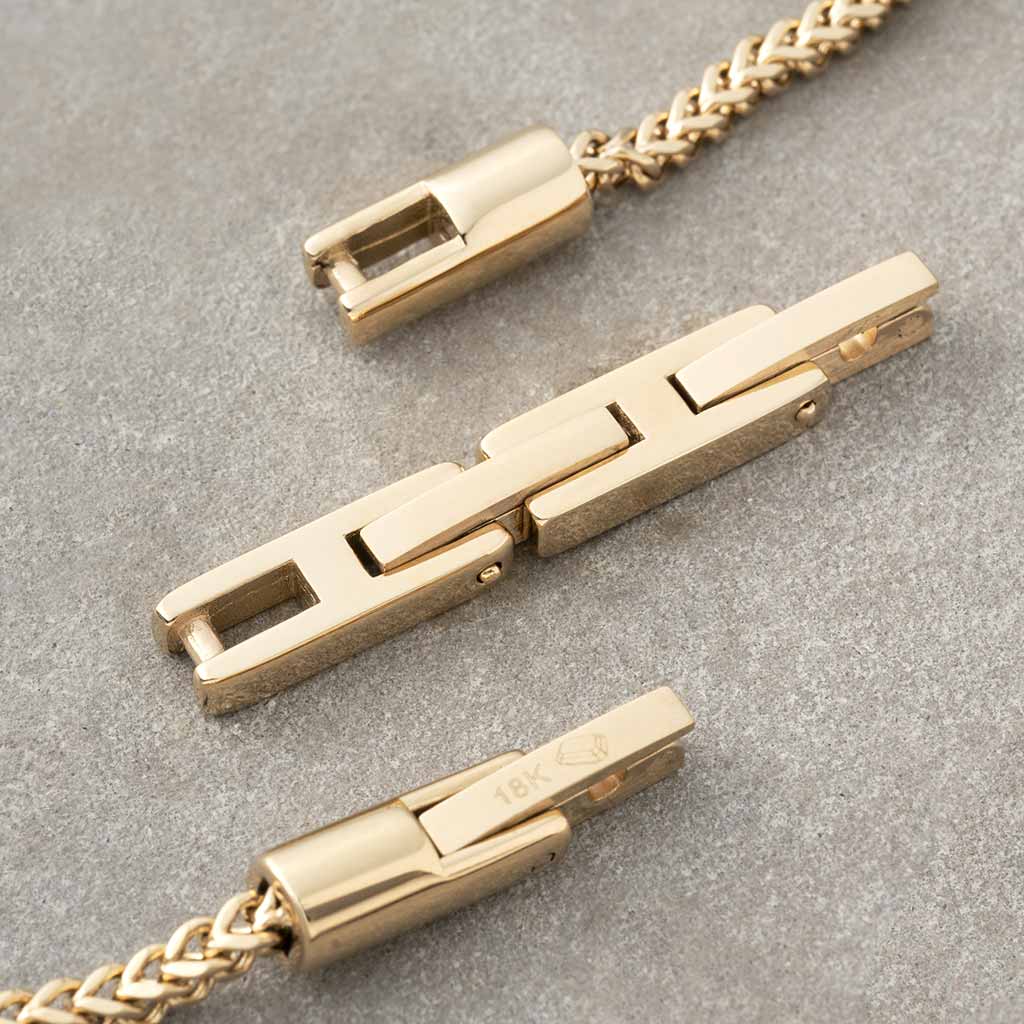 Fundimos Oro 18k sobre una aleación de titanio, forjando un blindaje con el color, brillo y textura del Oro Italiano.